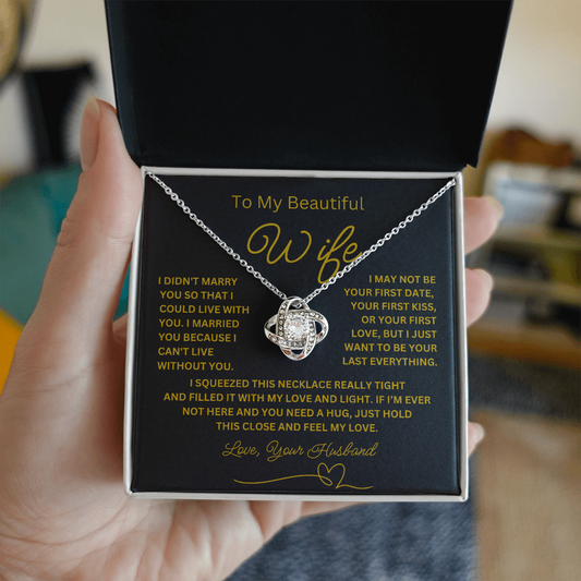 Gift for Wife "I Can't Live Without You" Gold Knot Necklace B/W